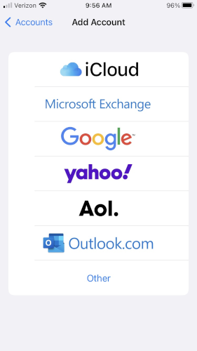 You'll see a list of accounts, (if you have any). Choose "Add Account" at the bottom: