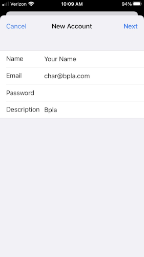 Here's where you start filling in your info (Passwords do not show up in the screenshots). Hit "Next" when you've filled this info in: